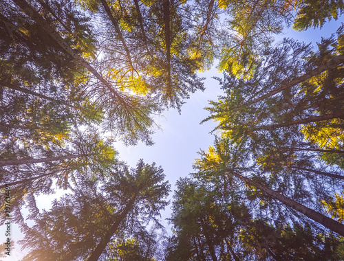 Fototapeta premium Looking up to the sky through trees