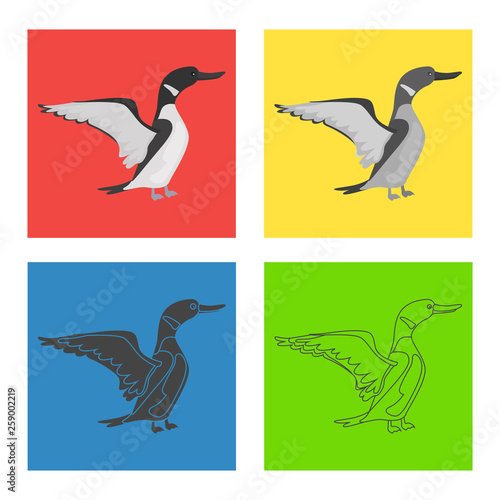 Fototapeta premium Loon color flat, line, simple, black and white concept icons set