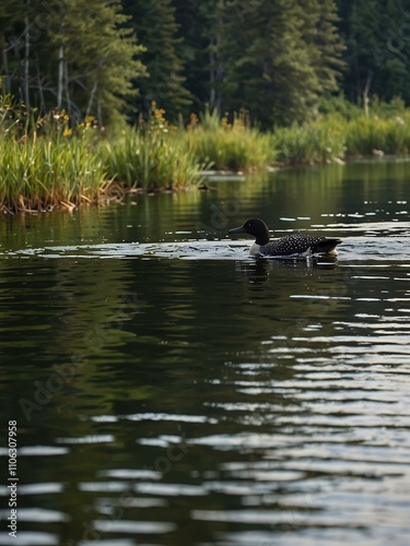 © claudunia, Fototapeta premium Loons swimming and fishing on Days Lake.