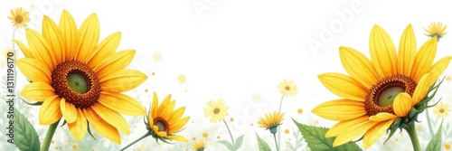 © Pat, Fototapeta premium Loose watercolor style, single sunflowers & daisies , nature, yellow, art