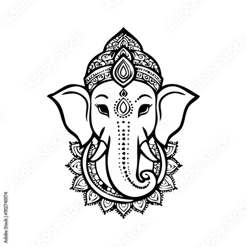 Fototapeta premium Lord Ganesha Black and white, Border