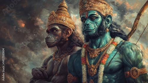 © Samady, Obraz premium Lord Rama with his loyal companion, Hanuman.
