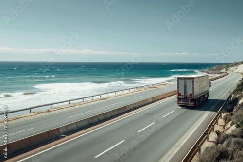 © AHNH5, Obraz premium Lorry Driving Along Coastal Highway Under Clear Sky