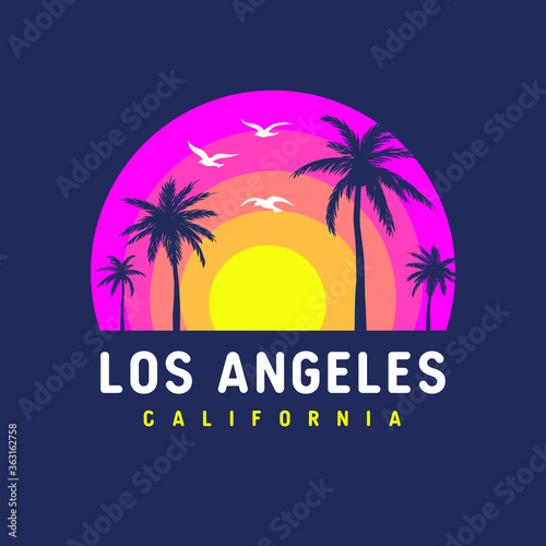 © Marek, Fototapeta premium Los Angeles California Vector Logo Graphic T-shirt Palms Beach Sunset