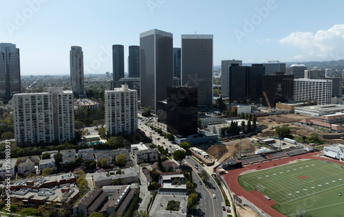 Fototapeta premium Los Angeles Century City Downtown from Olympic Blvd Aerial Shot California USA