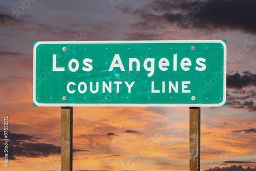 © trekandphoto, Fototapeta premium Los Angeles County Sign with Sunset Sky