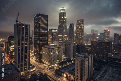 © Danicha, Fototapeta premium Los Angeles Downtown Skyscrapers Night Urban Exploration Photography