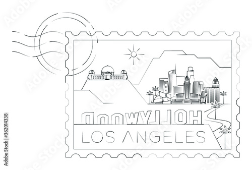 Fototapeta premium Los Angeles stamp minimal linear vector illustration and typography design,...