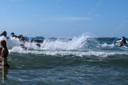 © jesuschurion57, Naklejka premium Los turistas son arrojados de la banana en forma violenta.
