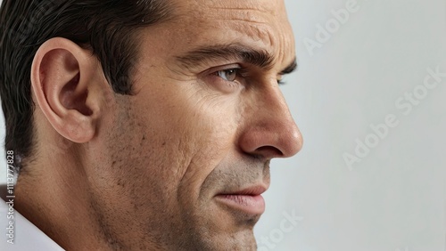 © Fathor, Fototapeta premium lose_up_view_of_a_mans_ear_on_white_backgroun