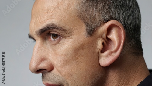 Obraz premium lose_up_view_of_a_mans_ear_on_white_backgroun