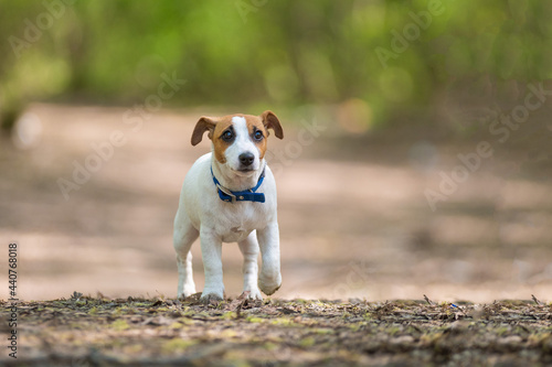 © Михаил Решетников, Obraz premium Lost dog jack russell terrier in the forest
