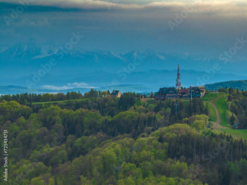 © rogozinski, Fototapeta premium Lot nad Pasmem Jaworzyny Krynickiej. Piękne krajobrazy.