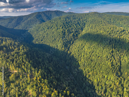 © rogozinski, Fototapeta premium Lot nad Szczawnikiem o zachodzie słońca późnym latem.