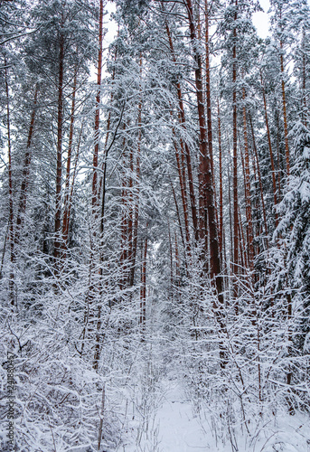 © OLAYOLA, Fototapeta premium А lot of thin twigs covered with snow in fairy tale winter forest