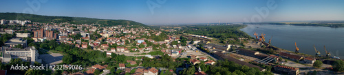 © Atanas, Fototapeta premium Lotnicza panorama rzeki Danuve nad Svishtov, Bułgaria