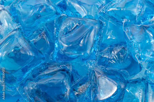 Obraz premium Lots of blue laundry detergent capsules. Washing machine capsule background.