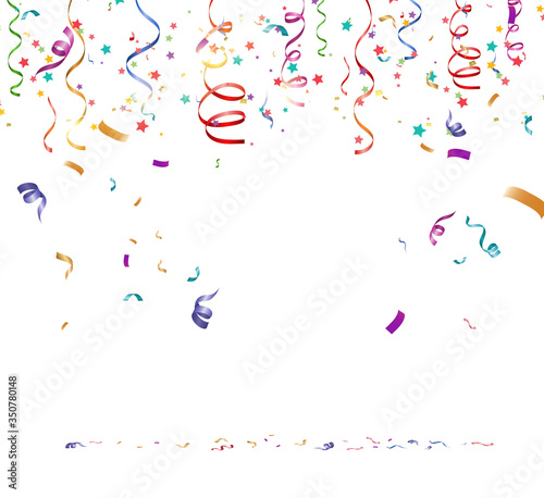 Fototapeta premium Lots of colorful tiny confetti and ribbons on transparent background. Festive...
