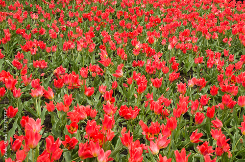 Fototapeta premium Lots of colorful tulip flowers natural spring background