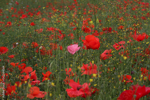 Fototapeta premium Lots of corn poppy flowers growing together in an open field
