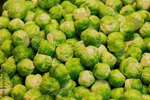 Obraz premium Lots of green brussels sprouts, fresh green vegetable