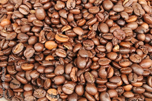 © Anatolijs, Fototapeta premium Lots of roasted coffee beans in a large pot prepared for grinding
