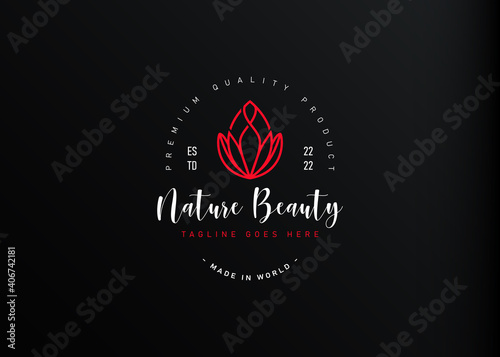 Fototapeta premium Lotus buds bloom logo design. Vector illustration of abstract red lotus monoline design. Vintage logo design vector line icon template