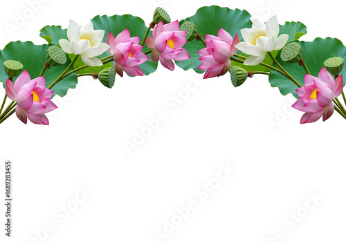 Fototapeta premium Lotus Flower Arch with Elegant White Background