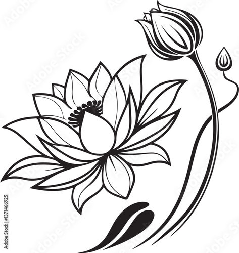 © Silhouette Stock 10., Fototapeta premium lotus flower, simple flower icon, lotus flower silhouette vector black and white