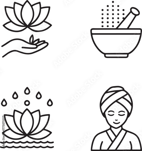 © Bonna, Fototapeta premium Lotus Flower Spa And Wellness Icons