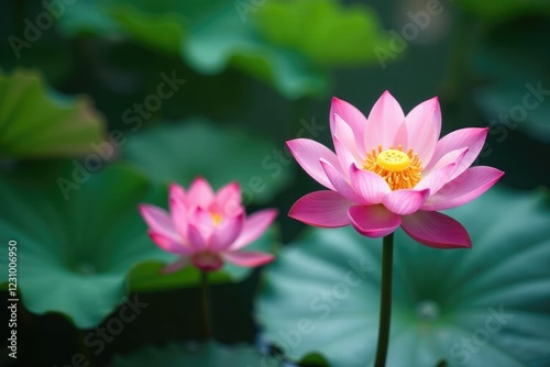 Obraz premium Lotus flowers blooming in a serene environment, peaceful, aquatic