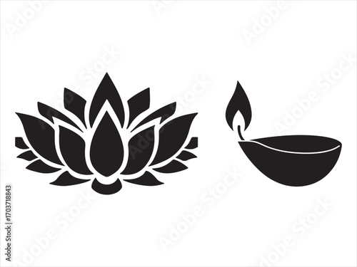 © Dipankar, Fototapeta premium Lotus Silhouette Design and oil lamp