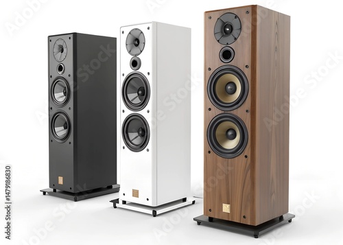 © mahatabuddin, Obraz premium Loudspeakers showcased in a modern design, audio loudspeakers, isolated on white background