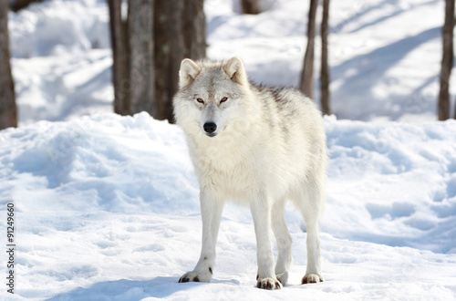 © karlumbriaco, Naklejka premium loup blanc en hiver