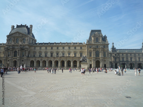 © Andrea, Fototapeta premium Louvre Museum, Paris, France, August 16 2018: visitors outside the museum