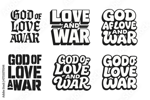 Fototapeta premium Love and War Typography. God of Love and War. Set lettering. harmonious lettering variations of the same emblematic concept (Gothic-inspired decorative type,