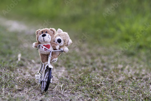 © supanee2550, Obraz premium Love bear on a bicycle in the field