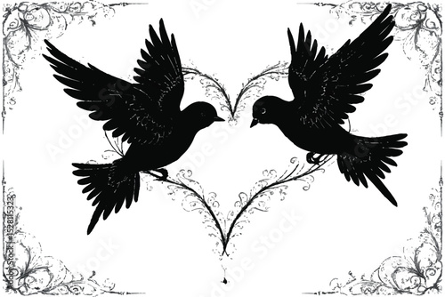 Obraz premium "Love Birds in Circular Frame – Black Vector Silhouette"
