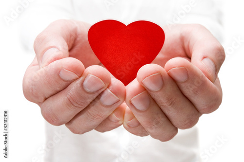 © graja, Fototapeta premium love concept. holding a red heart in hands.