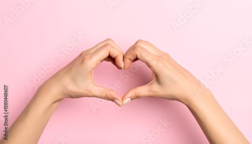 © Wahyuprt, Fototapeta premium Love Concept with Heart Hands on Pink Background for Valentine and Relationship Themes