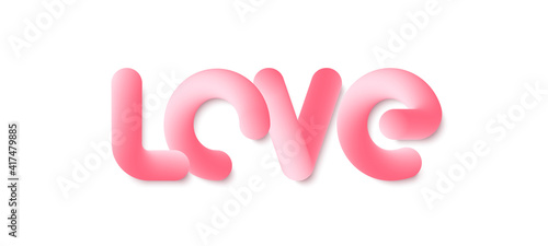 Fototapeta premium Love 3d line text. Vibrant gradient blended fluid love word. Smooth 3d line text for Valentine Day. Creative pink calligraphy concept. Abstract smooth form design. Vector illustration