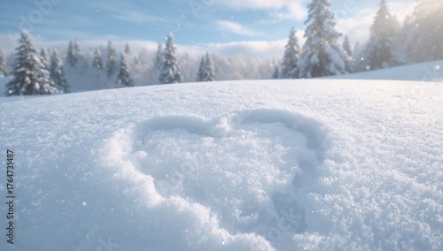 © Holo Frame, Fototapeta premium Love emblem on fresh snow cover