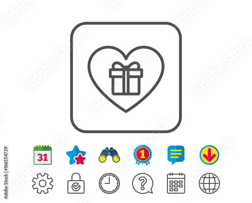 © blankstock, Fototapeta premium Love Gift box line icon. Present sign.