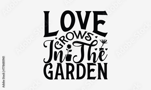 Naklejka premium Love Grows In The Garden - Gardening T- Shirt Design, Hand Written Vector...