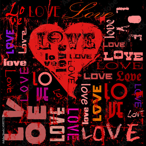 Obraz premium love illustration, hearts and words, grungy style, vector