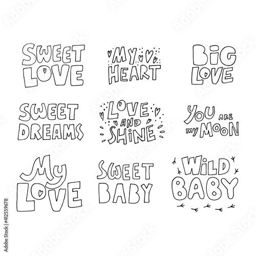 © Natspace, Fototapeta premium Love lettering set. Hand drawn iillustration. Vector image.