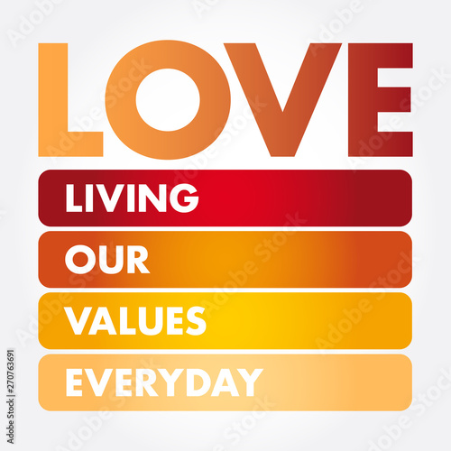 Obraz premium LOVE - Living Our Values Everyday acronym, business concept background