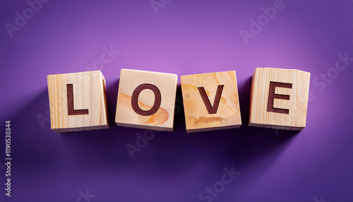 © Andesgn, Obraz premium Love on Purple Background with Gold Confetti