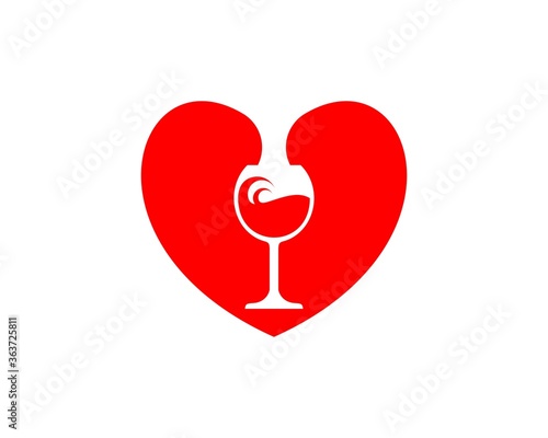 Fototapeta premium Love shape with glass wine inside