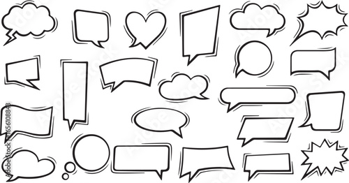 Obraz premium love speech bubbles, heart doodle icons, cloud talk balloons, romantic doodle set, hand drawn love bubbles, sketch cloud balloons, heart message icons, doodle romantic elements, cartoon cloud doodles,